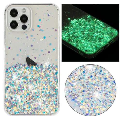 Estuche para teléfono TPU iPhone 12 Pro con polvo de brillo noctilucente y marco Transparente (Blanco)