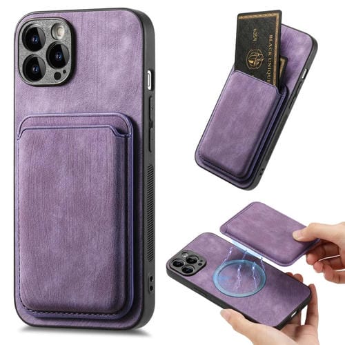 Funda de Teléfono para iPhone 12 Pro Magnética con Bolso de Tarjeta de Cuero Retro (Púrpura)