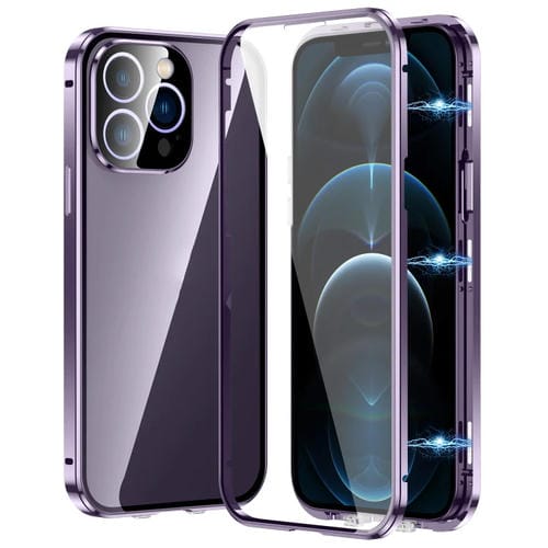 For iPhone 12 Pro Magnetic Phone Case HD Tempered Glass Double Buckle Case (Purple)