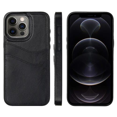 For iPhone 12 Pro Phone Case with Card Slots Litchi Skin Leather (Black)