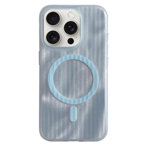 For iPhone 12 Pro Magnetic Magsafe Phone Case with Striped Skin Feeling (Blue)