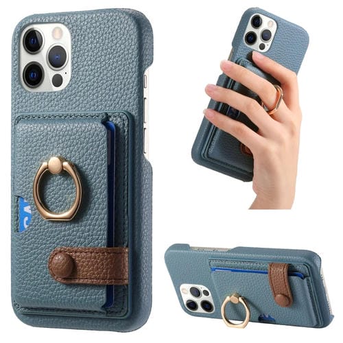 Funda para Teléfono iPhone 12 Pro Litchi Leather Oil Edge Ring Card Back (Azul Claro)