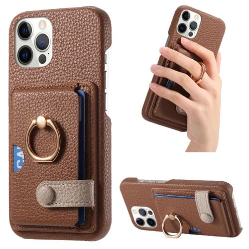 Funda para Teléfono iPhone 12 Pro Litchi Leather Oil Edge Ring Card Back (Marrón)