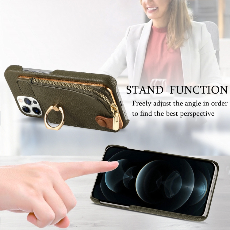 Funda para Teléfono iPhone 12 Pro Litchi Leather Oil Edge Ring Zipper Wallet Back (Verde)