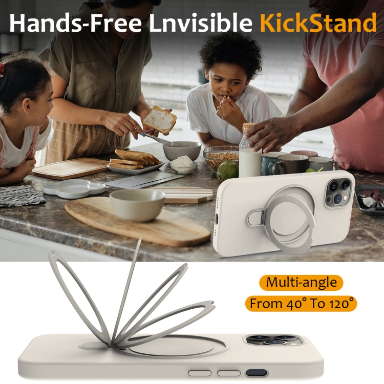 Funda para Teléfono iPhone 12 Pro Magsafe Silicona Líquida Magnética con Soporte para Anillo (Blanco Antiguo)