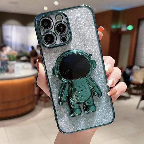 Funda para iPhone 12 Pro Max Astronaut Holder Gradient Glitter Powder (Verde)
