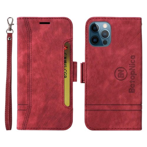 Estuche de Cuero Betopnice para iPhone 12 Pro Max con Hebilla de Doble Cara (Rojo)