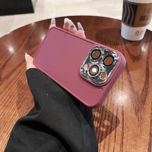 Caja de teléfono para iPhone 12 Pro Max con marco de Lente galvanizada y Película de Lente (Rojo Vino)