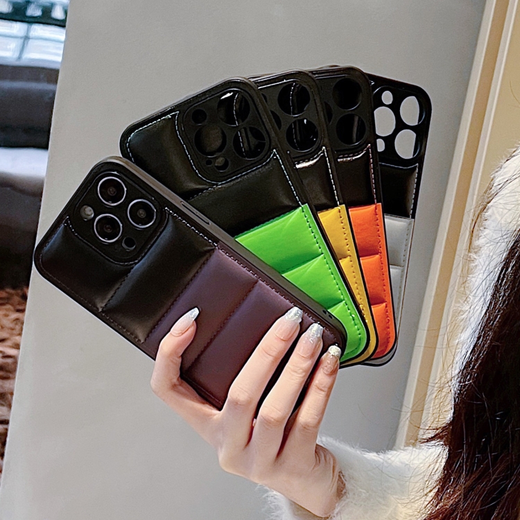 Funda para Teléfono iPhone 12 Pro Max Color Block Down Jacket (Negro Naranja)