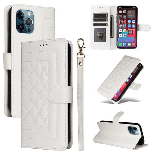 Funda para iPhone 12 Pro Max Diamond Lattice Cuero con Tapa (Blanco)