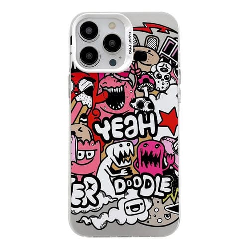 Funda Protectora PC Para iPhone 12 Pro Max Electroplated Silver Series Dibujos Animados