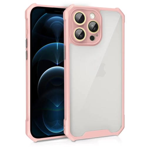 Estuche Acrílico para Teléfono iPhone 12 Pro Max a Prueba de Golpes con Película de Vidrio para Lentes (Rosa)