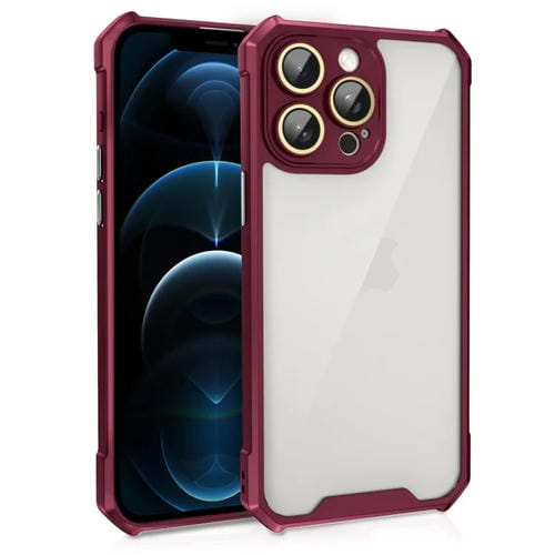 Estuche acrílico para iPhone 12 Pro Max a prueba de golpes con Película de vidrio para Lentes (Rojo Vino)
