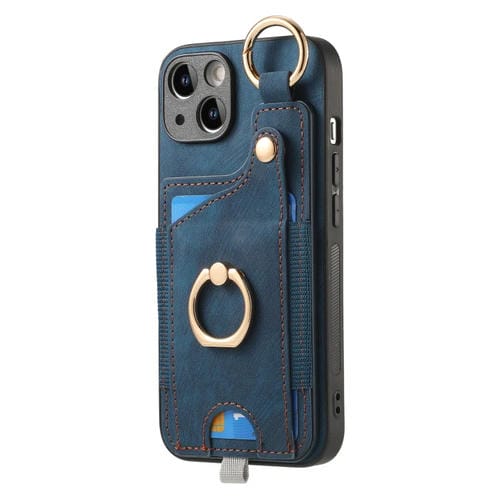 Estuche para Teléfono iPhone 12 Pro Max con Bolsa para Tarjeta Anillo y Sensación de Piel Retro con Lazo para Colgar (Azul)