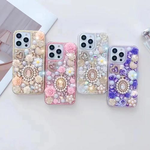 Estuche para Teléfono iPhone 12 Pro Max con Incrustaciones de Diamantes y Rosas para PC (Rosa)
