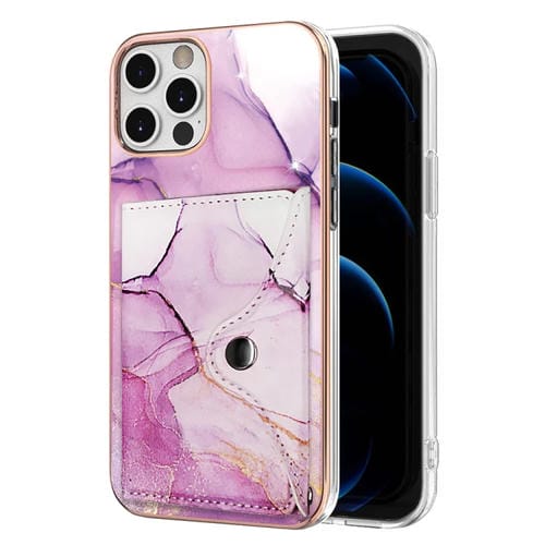 Estuche para teléfono iPhone 12 Pro Max con ranura para tarjeta Imd patrón de mármol (Oro Rosa, Morado)