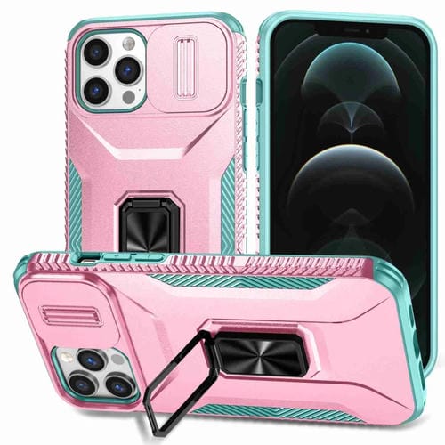 Estuche para Teléfono iPhone 12 Pro Max con Soporte Deslizante para Levas (Rosa + Gris Verde)