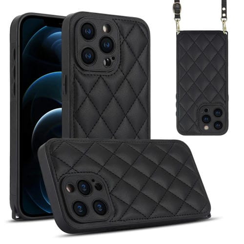 Estuche para Teléfono iPhone 12 Pro Max Textura Rómbica Cordón Doble (Negro)