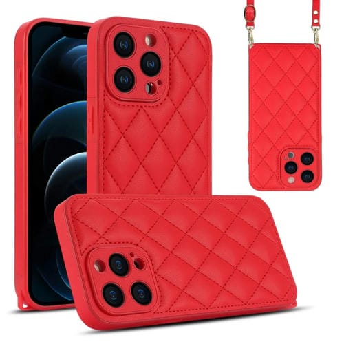 Estuche para Teléfono iPhone 12 Pro Max Textura Rómbica Cordón Doble (Rojo)