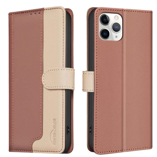 For iPhone 12 Pro Max Color Matching RFID Anti-Theft Leather Phone Case (Brown)