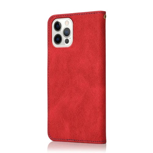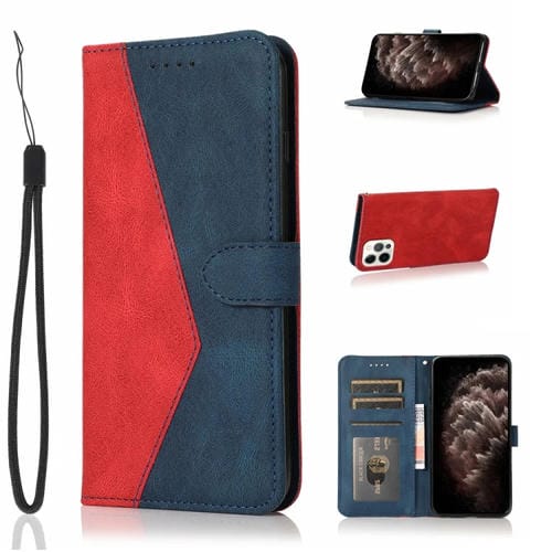 Estuche para Teléfono iPhone 12 Pro Max Cuero con Costuras Dos Colores (Rojo Azul)