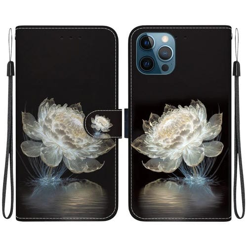 Estuche para Teléfono iPhone 12 Pro Max Cuero Dibujo Coloreado Textura de Cristal (Peonía de Cristal)