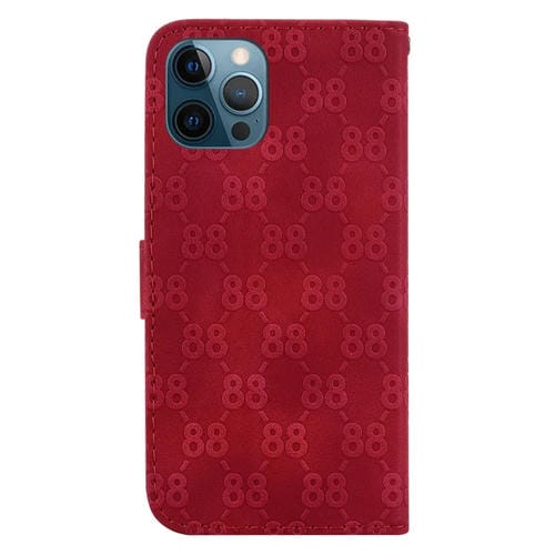 For iPhone 12 Pro Max Double 8 Shape Embossed Leather Phone Case (Red)