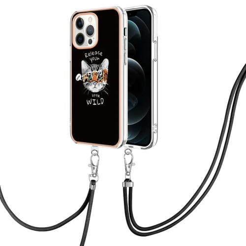 For iPhone 12 Pro Max Double-sided Electroplating IMD Phone Case with Lanyard (Natural Growth)