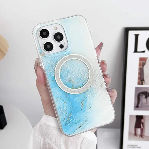 Estuche para Teléfono iPhone 12 Pro Max Magsafe Mármol Imd Doble Cara (Azul Cielo)