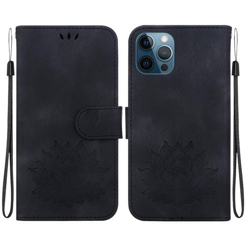 Funda para iPhone 12 Pro Max Cuero con Relieve de Loto (Negro)