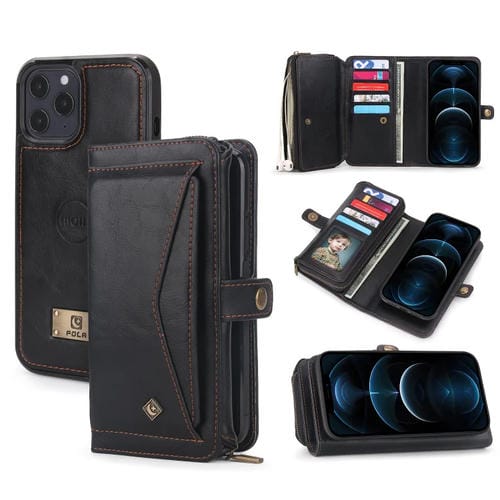 Pour iPhone 12 Pro Max Étui de téléphone en cuir portefeuille à fermeture éclair multifonctionnel (noir)