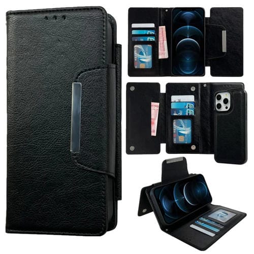 Funda de Cuero para iPhone 12 Pro Max con Billetera Multifuncional para 7 Tarjetas (Negro)