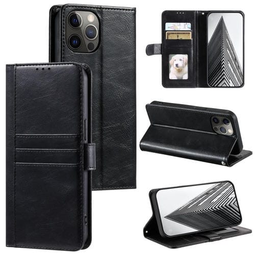 Funda para Teléfono iPhone 12 Pro Max Cuero con Billetera para 6 Tarjetas (Negro)