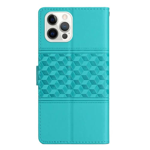 Funda para Teléfono iPhone 12 Pro Max Cuero Tacto Piel En Relieve con Cordón (Azul)