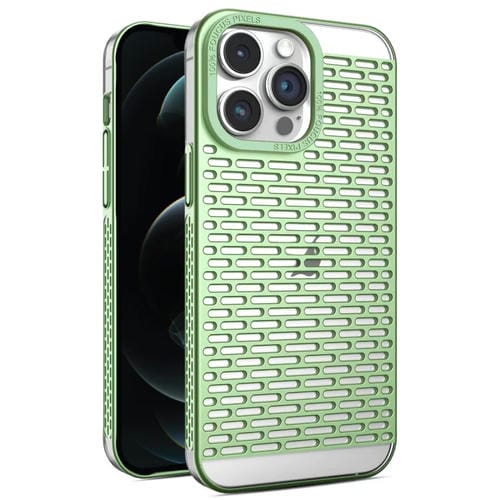Pour iPhone 12 Pro Max Étui de téléphone à dissipation thermique en PC galvanisé mat creux (vert)
