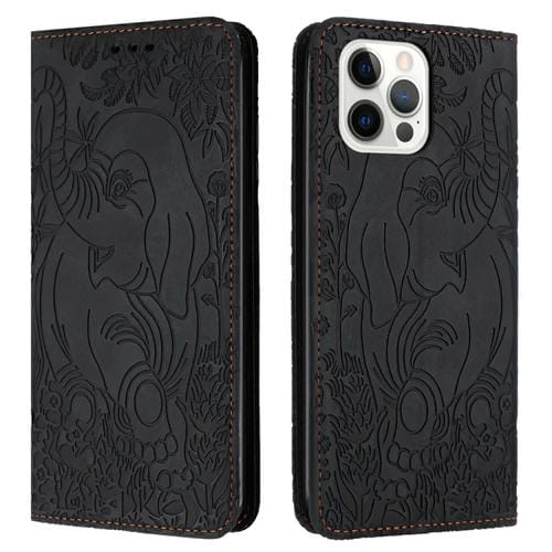 Funda para Teléfono iPhone 12 Pro Max Cuero Relieve Elefante Retro (Negro)