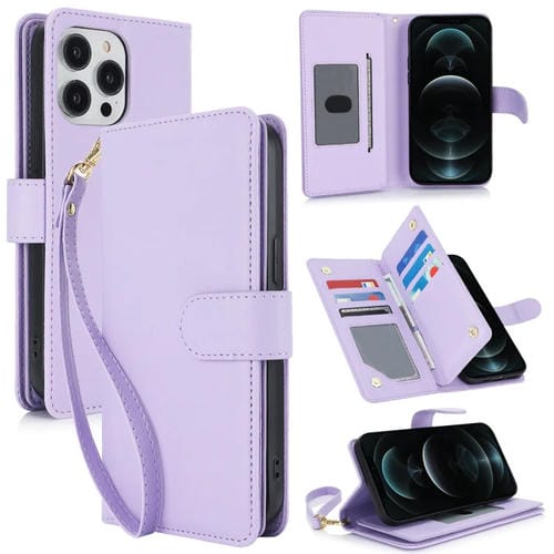 Funda para Teléfono iPhone 12 Pro Max Cuero Rfid con Billetera MultiTarjeta (Púrpura Claro)