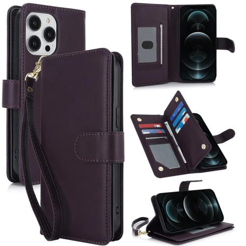 Funda para Teléfono iPhone 12 Pro Max Cuero Rfid Billetera MultiTarjeta (Púrpura Oscuro)