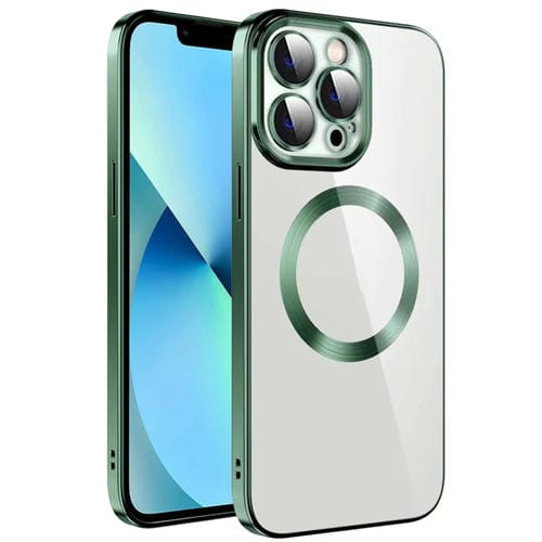Funda para teléfono iPhone 12 Pro Max Galvanoplastia Magsafe TPU con Película de Lente (Verde)