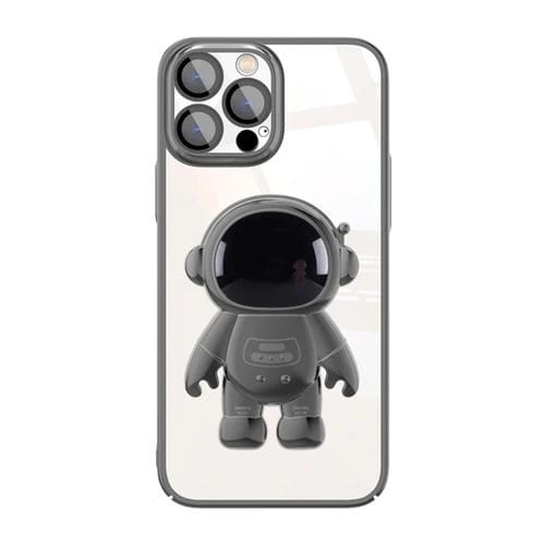 Funda para iPhone 12 Pro Max Galvanoplastia PC Astronaut Holder con Lente Film (Negro)