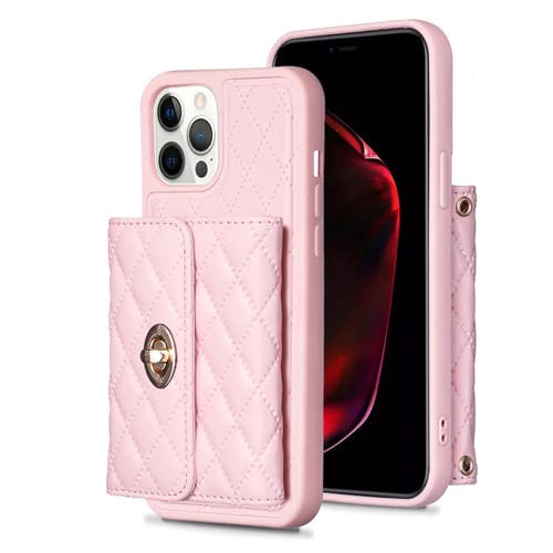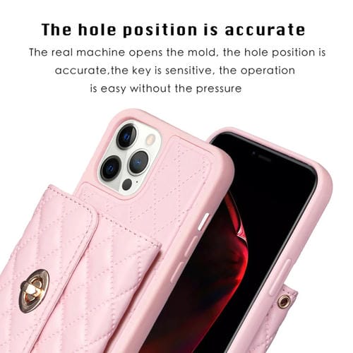 Funda para teléfono iPhone 12 Pro Max Horizontal Metal Hebilla Cartera Rombico Cuero (Rosa)