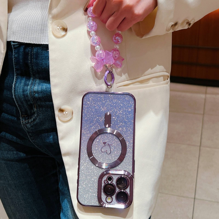 Funda para Teléfono iPhone 12 Pro Max Loves Gradient Glitter Pulseras Magsafe TPU Fibra de Carbono (Púrpura)