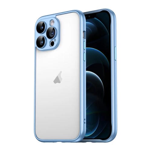For iPhone 12 Pro Max Macaron PC Phone Pure Edge Frame with Glass Lens Film(Blue)