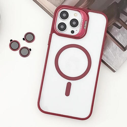 Estuche para Teléfono iPhone 12 Pro Max Magsafe TPU Híbrido Acrílico Soporte Película para Lentes (Rojo)