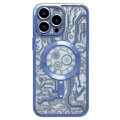 Estuche para Teléfono iPhone 12 Pro Max Patrón de Placa de Circuito Electrochapado Magsafe (Azul Sierra)
