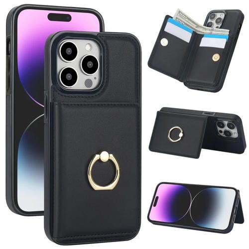 Funda para Teléfono iPhone 12 Pro Max Rfid con Soporte para Anillo y Tarjeta Antirrobo (Negro)