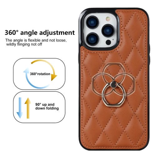Funda para Teléfono iPhone 12 Pro Max Rhombic PU Cuero con Soporte para Anillo (Marrón)