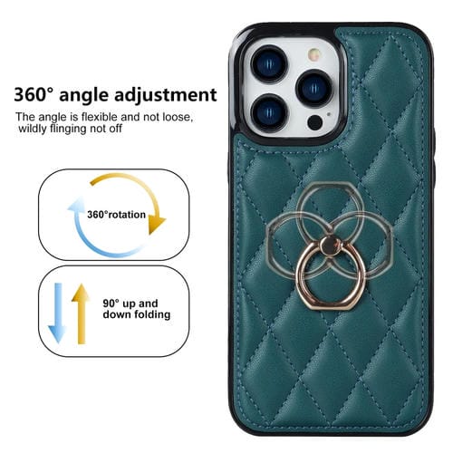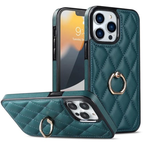 Funda para iPhone 12 Pro Max Rhombic PU Cuero con Soporte para Anillo (Verde)