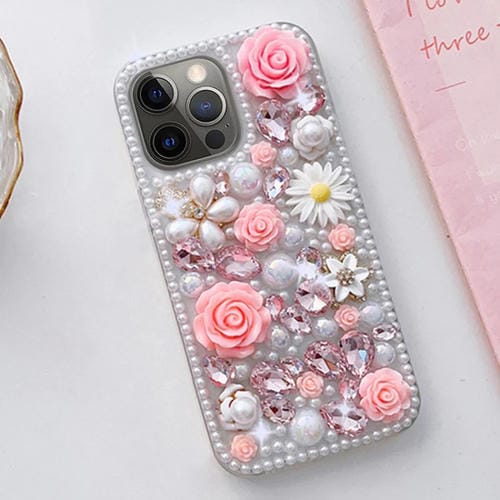 Estuche para Teléfono iPhone 12 Pro Max Rose con Diamante para PC con Juego de Mano (Rosa)