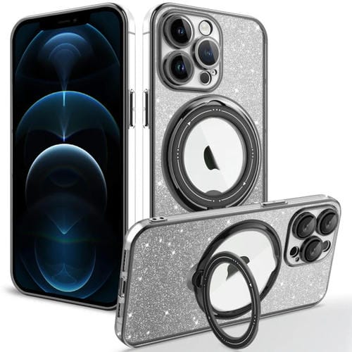 Estuche para teléfono iPhone 12 Pro Max Rotation Magsafe Holder TPU con brillo degradado (Negro)